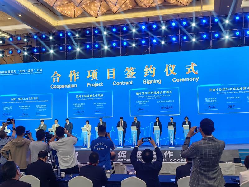 9月15日,中歐班列國際合作論壇在江蘇省連云港市成功舉辦,本次論壇共形成48項合作成果。其中,江蘇外貿公司與瑞士TELF AG公司、江蘇省班列公司的運貿一體化三方合作協議在“班列+經貿”分論壇上成功簽約。江蘇外貿公司總經理助理張之棟代表江蘇外貿簽署該協議。