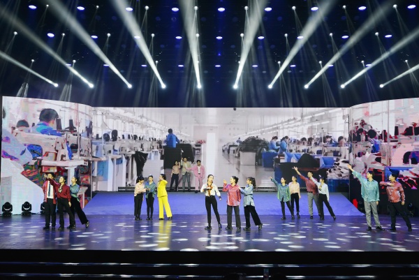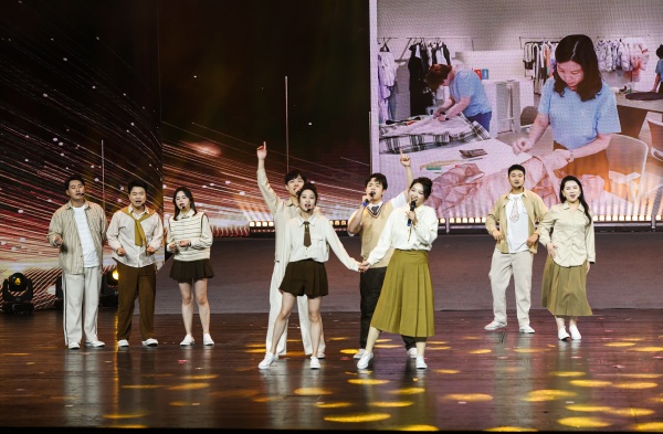 伴隨著不同律動感的音樂,舞臺秀《錦“秀”蘇豪》中的演員們身著集團(tuán)自有品牌服飾,上演了一場精美絕倫的T臺走秀,在古典與時尚的視覺碰撞中,再現(xiàn)了集團(tuán)以紡織服裝為基本盤,加強(qiáng)設(shè)計研發(fā)、開展自主創(chuàng)新、推動轉(zhuǎn)型升級的豐碩成果。