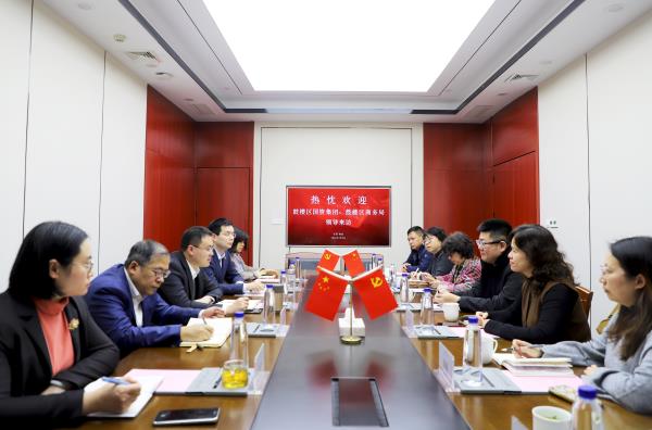 鼓樓區商務局外經外貿科、鼓樓區國資集團相關部室、華僑路街道相關人員,外貿公司資產財務部、法審合規部和辦公室負責人參加交流會談。