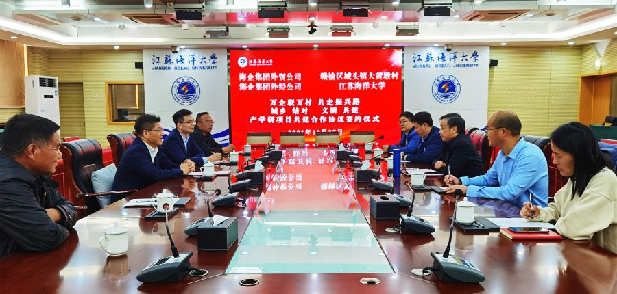 許興友介紹了江蘇海洋大學發(fā)展歷程和基本情況,對海企集團及外貿公司、外經公司開展產學研項目表示歡迎和感謝。許興友指出,近年來,海洋大學積極踐行社會責任,服務地方經濟發(fā)展,本次項目合作是學校助力“萬企聯萬村”的有力行動。學校將組織海洋學院專業(yè)技術團隊,全程跟蹤做好項目設計和建設,為大黃墩村提供技術指導和管理培訓,全力以赴把好事辦好。