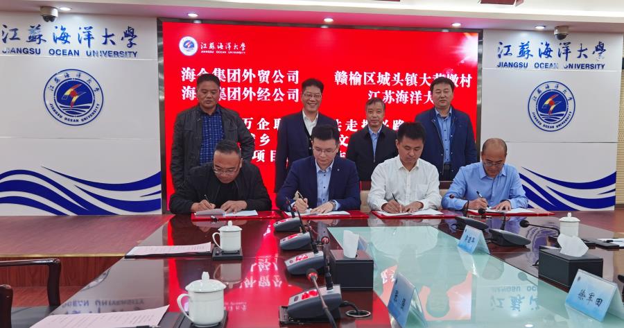 集團黨委副書記閆國倫、外貿公司黨總支副書記張強、外經公司辦公室副主任謝沖,江蘇海洋大學副校長許興友、海洋學院院長徐軍田、副院長高煥,大黃墩村黨支部書記高峰、村主任陳學剛參加了簽約儀式。