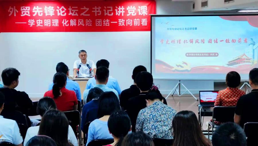 今年是中國共產黨成立100周年。為學習貫徹習近平總書記在黨史學習教育動員大會上發表的重要講話,落實集團黨史學習教育工作方案,進一步深入推進黨史學習教育,8月31日下午,外貿公司黨總支書記、董事長畢武為公司全體黨員和中高層管理干部講授“學史明理 化解風險 團結一致向前看”主題黨課。