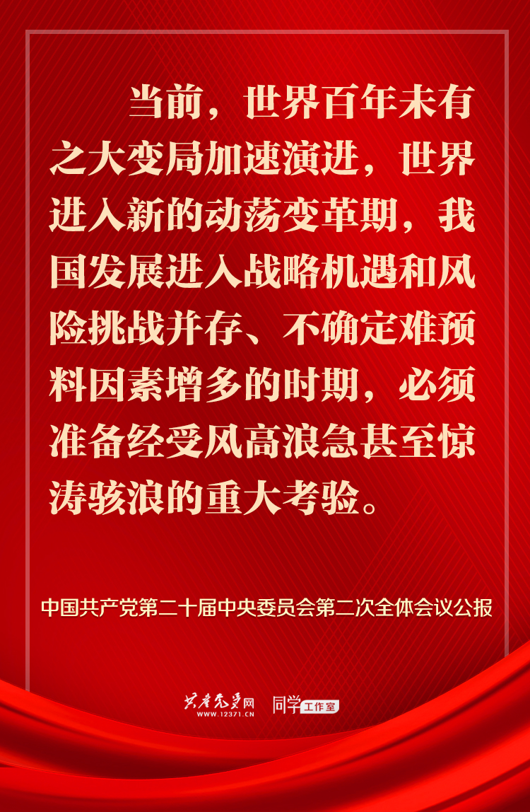 2023年2月26日至28日,中國共產黨第二十屆中央委員會第二次全體會議在北京舉行。習近平總書記作了重要講話。