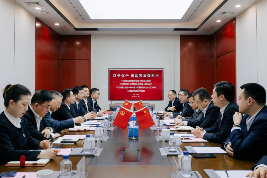為推動黨建與經(jīng)營發(fā)展中心工作深度融合,4月24日,中遠海運物流供應鏈有限公司上海大區(qū)黨委書記葉宇芒一行到訪外貿公司,與外貿公司領導班子成員等開展學習貫徹習近平新時代中國特色社會主義思想主題教育調研座談會,就業(yè)務領域、黨建共建等多方面合作展開探討。