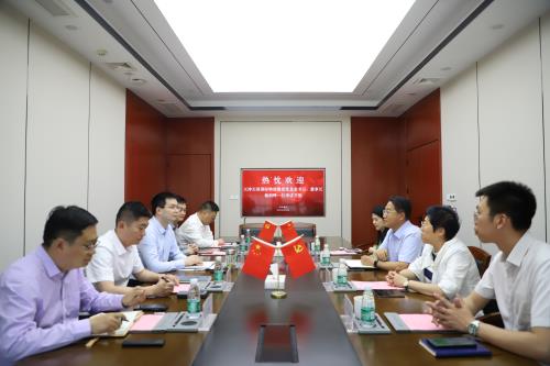 Prior to the meeting, Chairman Yang Runduo and his delegation visited the exhibition hall of the "Five Bright Pioneers" party-building initiative and the exhibition of integration, development, and practices of business at Jiangsu Provincial Foreign Trade Corporation.